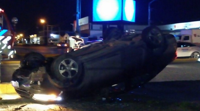 Un joven conductor en estado de ebriedad protagonizó un importante accidente vial -esta madrugada- en la ciudad de Río Grande, luego de despistarse y volcar en la Rotonda de las Américas, a bordo de un automóvil de escaso kilometraje