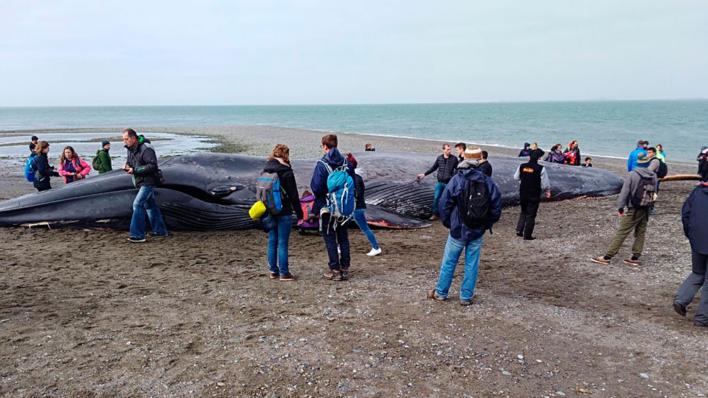 La mañana de este sábado (17 de febrero), un inusual avistamiento se hizo en Punta Delgada, dando cuenta que a unos 50 metros del faro del lugar había una ballena de grandes dimensiones varada en el borde costero.