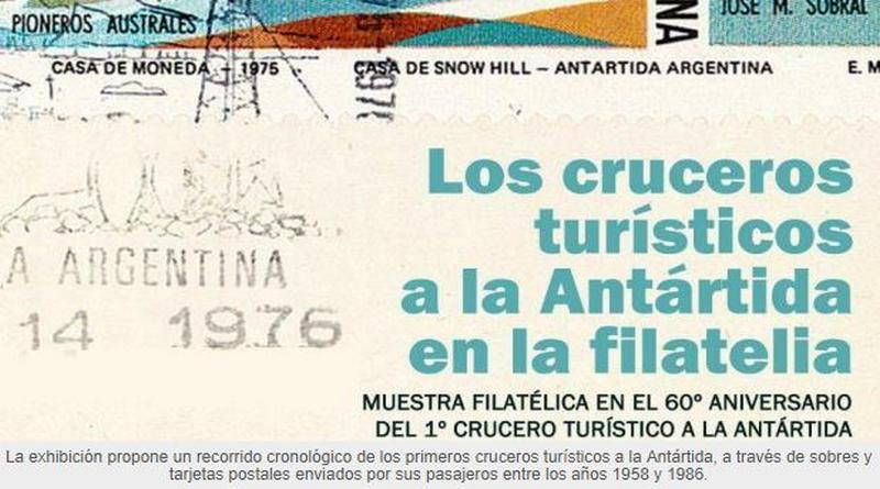 La exhibición propone un recorrido cronológico de los primeros cruceros turísticos a la Antártida, a través de sobres y tarjetas postales enviados por sus pasajeros entre los años 1958 y 1986. El material perteneciente al Centro de Documentación Antártica de la UNTDF, es una fuente documental importante para la investigación ya que ayuda a construir la cronología de los primeros viajes de turismo al Continente Antártico.