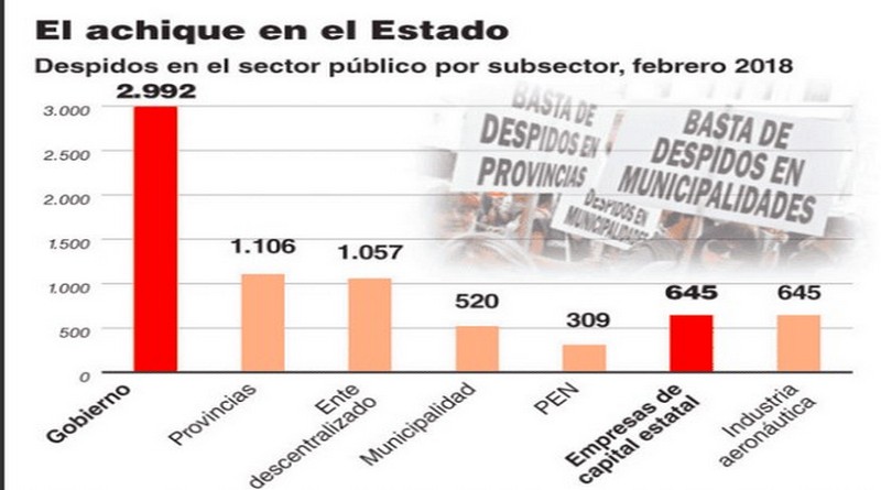 Las dependencias incluyen al Senasa, Lotería Nacional, Anses y los hospitales Posadas, Gallardo y Quintana. Sin visos de sorpresa, en cuanto al sector privado, los despidos se aprecian en el sector industrial. El acumulado que contabilizan desde diciembre de 2015, inicio de la administración Cambiemos, a febrero pasado expresa que se contabilizaron 72.193 casos.