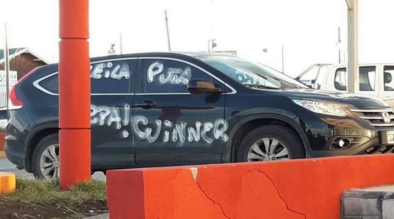 El mismo tenía pintadas con aerosol blanco, en ambos laterales y el capot, donde insulta a su pareja.