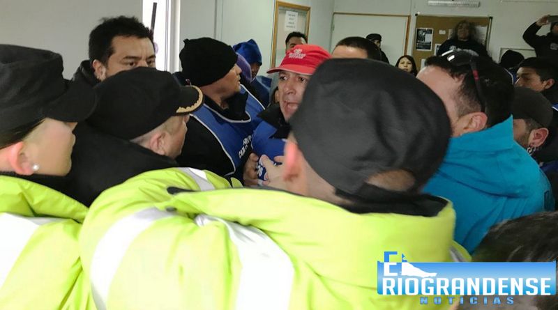 Los hechos ocurrieron minutos después de las 10.00, cuando se hicieron presentes los representantes de la Municipalidad de Río Grande en la paritaria con los gremios de ATE, ASOEM y Obras Sanitarias, para tratar de acordar una pauta salarial para este año. En ese momento, la Policía reforzó su presencia en el lugar.