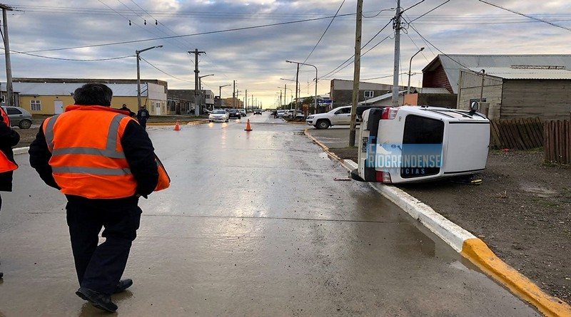 El siniestro se produjo hoy a las 9 de la mañana en la esquina de Yaghan y Wonska de la Margen sur de esa ciudad. Un Fiat Uno se llevó la peor parte al terminar su marcha volcado sobre su lateral derecho.