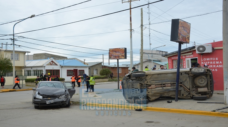 Como producto de la colisión la Kangoo termino volcando, en tanto, el Chevrolet terminó con importantes daños materiales.