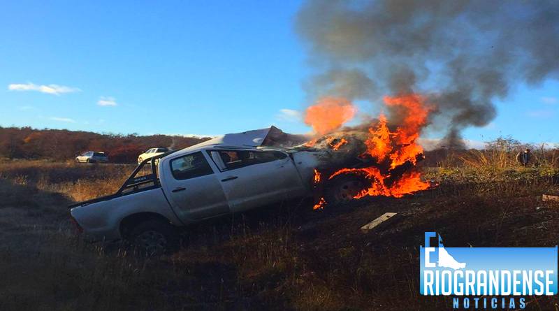 Una Toyota Hilux protagonizó un grave y escalofriante accidente -esta mañana- en la bajada denominada «Kosovo», unos 12 kilómetros antes de llegar a Tolhuin, luego de sufrir un despiste, volcar e incendiarse completamente.