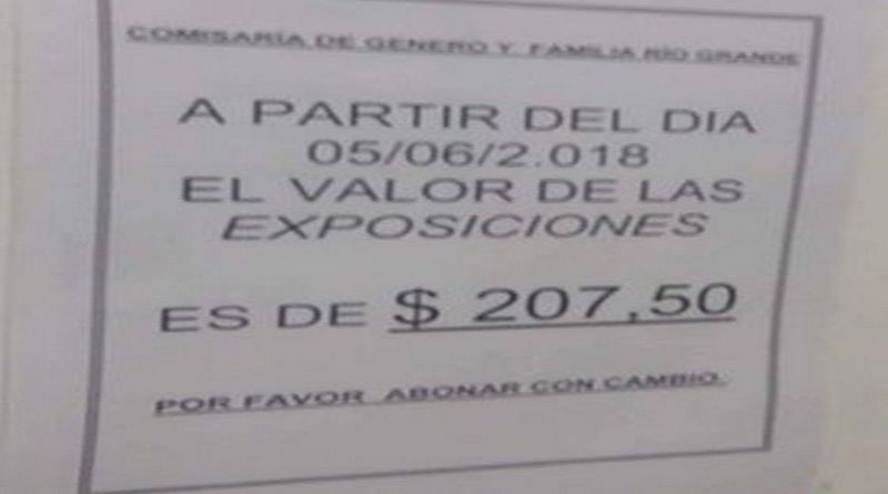 Las consultas surgieron a partir de una fotografía que fue tomada, en la Comisaría de Género y Familia de la ciudad de Río Grande, en la cual se reflejaba que las exposiciones tenían un valor de más de $200, y que además, se debía abonar con cambio.