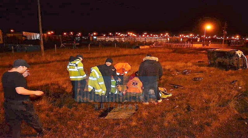 El taxi terminó volcando en la banquina, saliendo despedida la mujer quien milagrosamente no tuvo lesiones importantes, siendo ambos ocupantes hospitalizados.