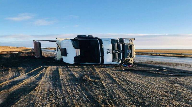 Allí se informó que un camión perteneciente a la empresa petrolera AESA, Mercedes Benz Actros 3341K de color blanco, patente PIW 561, el cual era conducido por Moisés Narciso Aibar de 46 años, perdió el control debido al estado resbaladizo de la calzada, sufriendo un despiste, para luego volcar sobre uno de sus laterales.