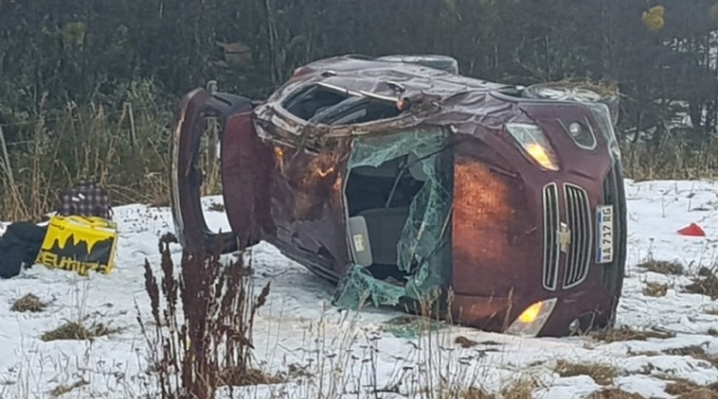 Allí una camioneta Chevrolet Tracker de color bordó, chapa patente AA 717 RG, la cual era conducida por Gabriela González de 48 años, perdió el control rodado a raíz del estado resbaladizo de la calzada, la cual terminó dando varios tumbos, para finalizar apoyada sobre uno de sus laterales.