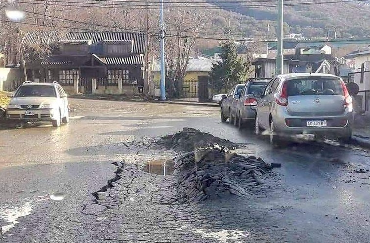 Los cambios de clima sumado a las lluvias han provocado que el asfalto en algunas arterias colapsara. Tal es el caso de la arteria Padín Otero casi Francisco Torres en el barrio “Los fueguinos”. Sin embargo existen otros sectores de la ciudad como Héroes de Malvinas y Albatros donde el pavimento también se vio afectado.