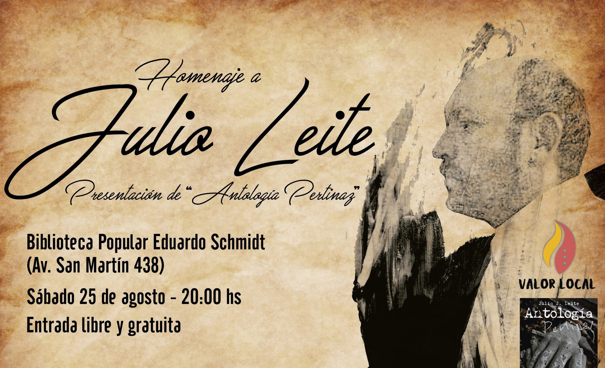 En el marco del programa “Valor local, sintiendo cultura” que lleva adelante la Secretaría de Promoción Social a través de la Dirección de Cultura y la “Red de Ciudades Creativas”, este sábado 25 de agosto se realizará un homenaje al escritor fueguino Julio Leite.