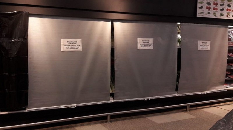 Cabe destacar que el sector se encuentra bloqueado a la circulación de los clientes, gran parte de la mercadería está cubierta con plásticos, y las góndolas cerradas.