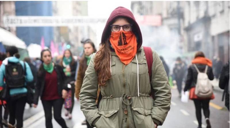 Este año, junto con la masificación de los pañuelos verdes y celestes también empezó a circular el pañuelo naranja, que promueve el laicismo con la consigna “Iglesia y Estado, asunto separado”.