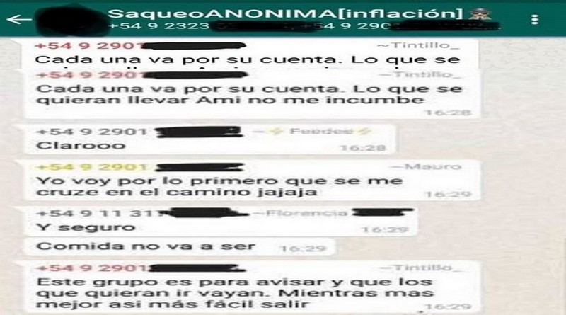 El Ministerio Público Fiscal imputó al joven de 18 años y otros dos de 22, quienes administraban un grupo de WhatsAap denominado “Saqueo ANONIMA (inflación)”, por haber instigado públicamente a terceros a cometer delitos.