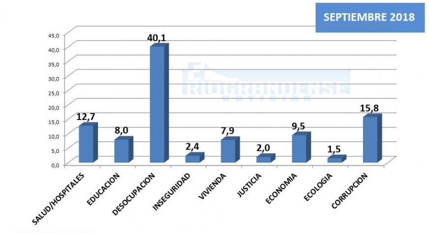 Con el 15,8% le siguieron la corrupción; mientras que Salud y Hospitales se ubica en tercer lugar según el 12,7% de los encuestados.