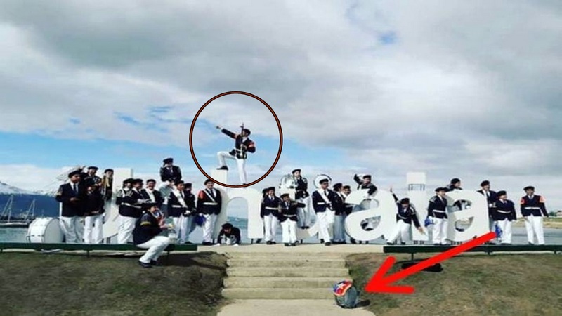 Precisamente, ésta última institución chilena fue la que se llego hasta el cartel de la pasarela, donde posaron y se sacaron fotografias parados sobre las letras de USHUAIA.