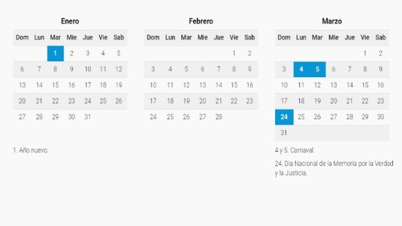 4 y 5. Carnaval. Feriado inamovible. Fin de semana largo.