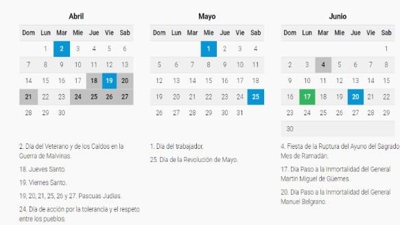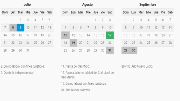 Serán no laborables con fines turísticos los días lunes 8 de julio, 19 de agosto y 14 de octubre, mientras que el Día de la Soberanía Nacional se adelanta del miércoles 20 de noviembre al lunes 18.