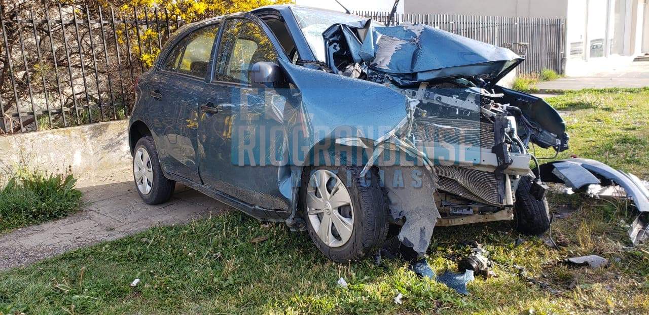 El conductor pierde el control del rodado en la bajada que se encuentra en las calles 9 de Julio y Luis Py, debido a la gran velocidad, impactando de lleno contra un poste.