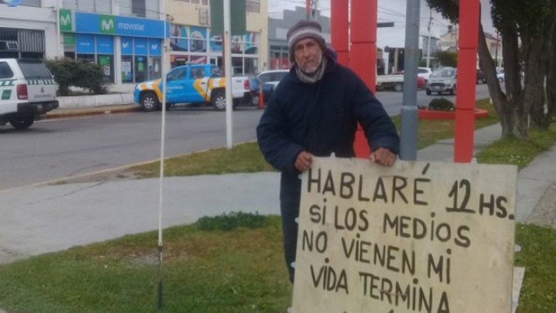 Ricardo dice que “mientras no pueda resolverlo, voy a quedarme en esta esquina”, dice en referencia a la intersección de Perito Moreno y Belgrano, el lugar donde se encuentra con un cartel pidiendo la presencia de la prensa y amenazando con que “mi vida termina acá” si no obtiene respuesta.