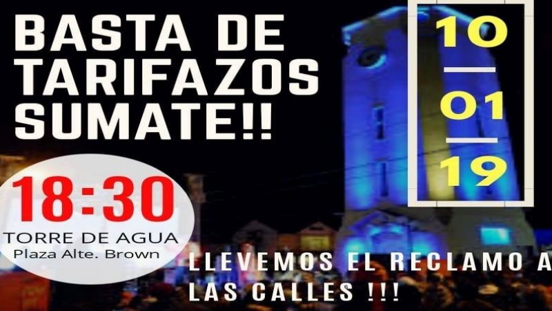 “Es necesario que nos expresemos este jueves, como se hará en diferentes ciudades de la Argentina, para decirle basta a los tarifazos. Desde la Multisectorial por la Soberanía convocamos a los vecinos y a las organizaciones gremiales, sociales, estudiantiles, barriales y políticas; a reunirnos a las 18:30 en la Plaza Almirante Brown –frente a la Torre de Agua.
