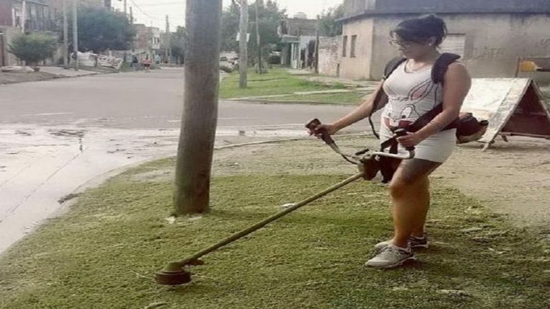 Rocii Bel, como se hace llamar en las redes, vive en la ciudad bonaerense de Gregorio de Laferrere. “No se me cae nada, ¿vergüenza que salga a trabajar de cortar pasto? ¡Vergüenza es salir a robar!”, expresó la mujer. Y explicó: “Todo lo hago para que a mis hijos no les falte nada y para poder terminar mi casita”.