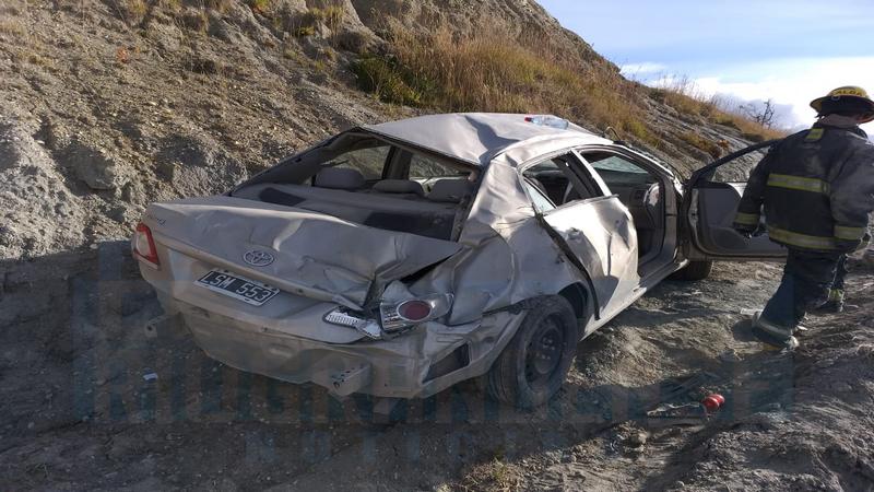 El Toyota Corolla transitaba con sentido sur norte y por causas que se tratan de establecer perdió el control de la unidad y termino volcando sobre la banquina, las ocupantes del rodado siniestrado resultaron ser Nahir Núñez (26), trasladada en ambulancia al Hospital Regional Rio Grande y la conductora Abril Alarcón (20) con politraumatismo en pierna, traslada al Centro Asistencial Tolhuin.