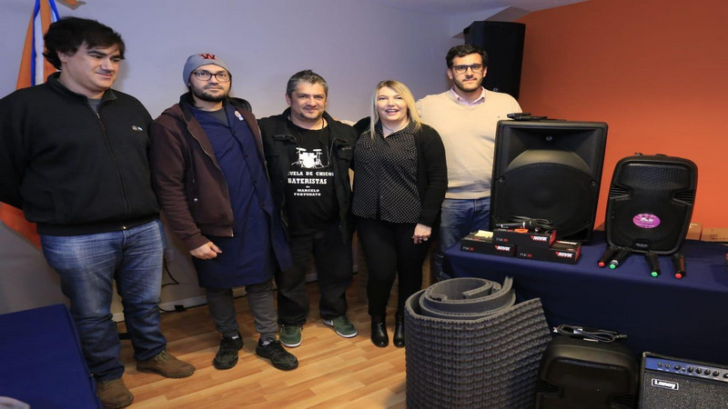 En el marco del programa provincial «Tierra de Unión y Cultura», la gobernadora Rosana Bertone junto al secretario de Cultura Gonzalo Benito Zamora entregaron este viernes en el IPRA de Río Grande, material y equipamiento de trabajo a artistas de esa ciudad.