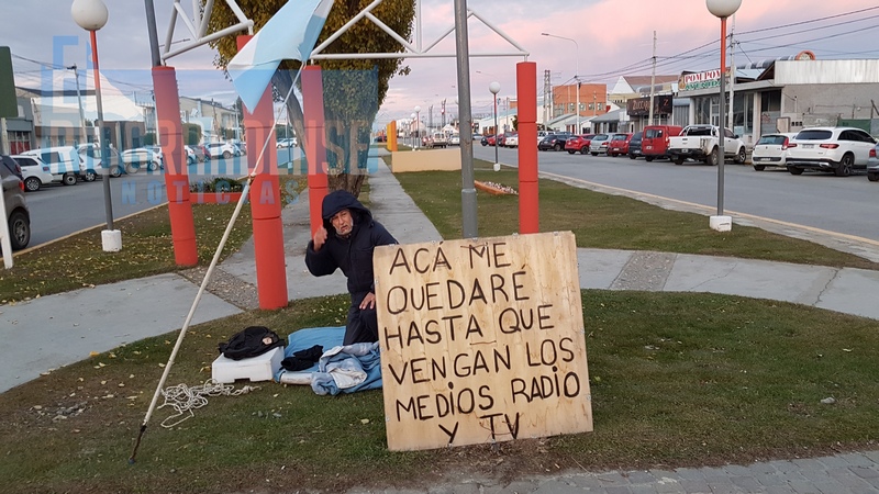 Durante la madrugada del lunes Ricardo González vecino de la ciudad de Río Grande, se instaló como forma de protesta en la intersección de Perito Moreno y Piedrabuena.