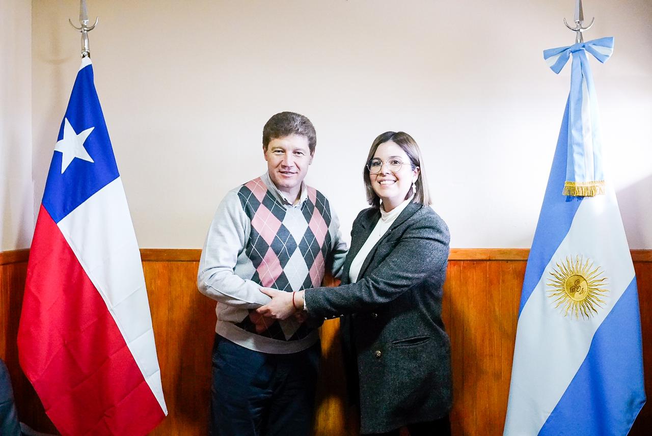 El Gobernador de Tierra del Fuego, Antártida e Islas del Atlántico, Gustavo Melella, mantuvo un encuentro con la Delegada Presidencial provincial de Tierra del Fuego chilena, Karim Fierro Brstilo, en el paso fronterizo San Sebastián del vecino país, en el marco de una nueva etapa en la vinculación subnacional entre el Gobierno de la provincia y la XII Región de Magallanes y Antártida Chilena.