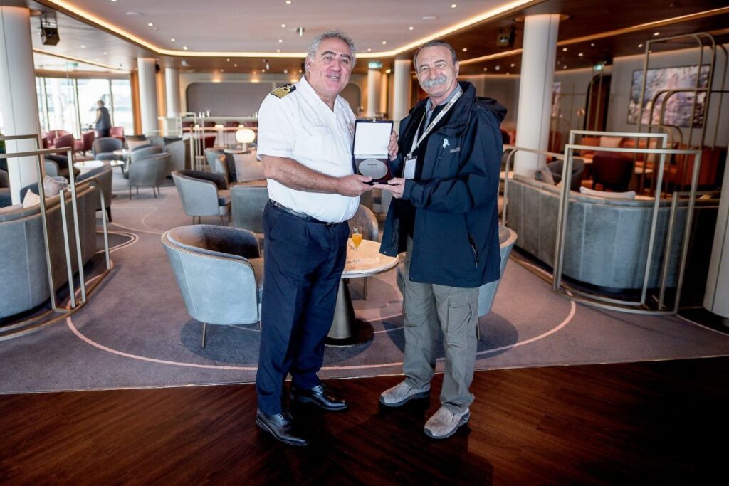 El Presidente de la Dirección Provincial de Puertos (DPP), Roberto Murcia, concretó la entrega de una placa de recibimiento al capitán del Buque Silver Nova, el cual arribó por primera vez al Puerto de Ushuaia, siendo así el primero de la Argentina en el que amarra.