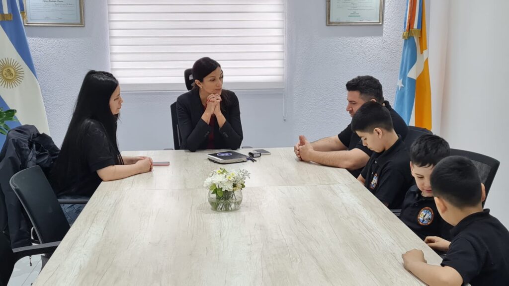 Durante el encuentro, entregó copia de la resolución que declara de Interés Educativo Municipal la trayectoria, el compromiso y entrega de la familia Ramírez Tevez.