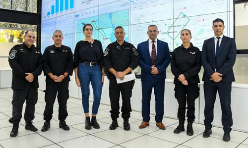 Los funcionarios recorrieron el Centro de Monitoreo Electrónico, oportunidad en la que la Directora de Video vigilancia e Innovación tecnológica del Ministerio de Justicia y Derechos Humanos de la provincia de Buenos Aires, Agustina Reyes Gerosi, acompañada por el subdirector general de Supervisión Electrónica, Carlos González, junto a la directora de Videovigilancia y AVI, Marina Zapata, al director de Monitoreo Electrónico, Mauricio Mansilla, y al director de Violencia de Género, Leandro Giamatolo, explicaron a Ciares y Masneri la visita el funcionamiento de las diferentes áreas.