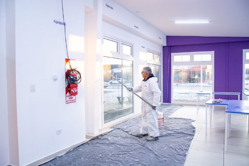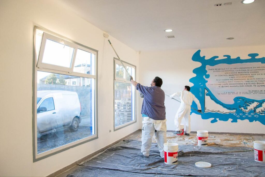 Las tareas que se llevan adelante son de mantenimiento general y pintura en las instalaciones de los 9 CCM ubicados en los barrios: Austral, De Las Aves, Aeropuerto; CGT, AGP, Chacra IV; Bishop, Malvinas Argentinas y Perón. Como así también en los Espacios Jóvenes de AGP y zona sur.