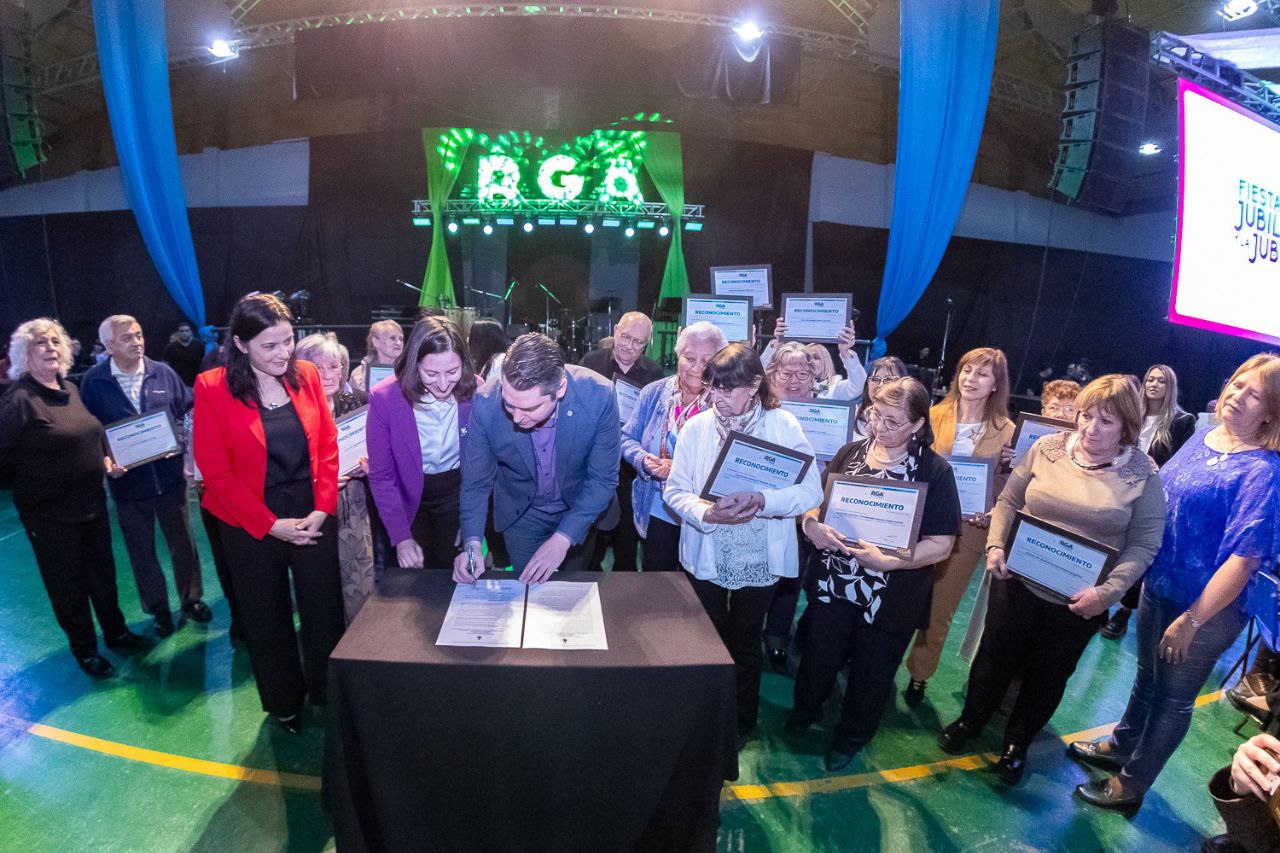 El intendente Martín Perez, junto a la secretaria de Género y Desarrollo Comunitario, Ivana Ybars, y la directora general para el Bienestar de las Personas Adultas Mayores, Analía Caruso, firmó el decreto para la creación de la figura del Defensor de las Personas Mayores, en el marco de la celebración por el Día de los Jubilados.