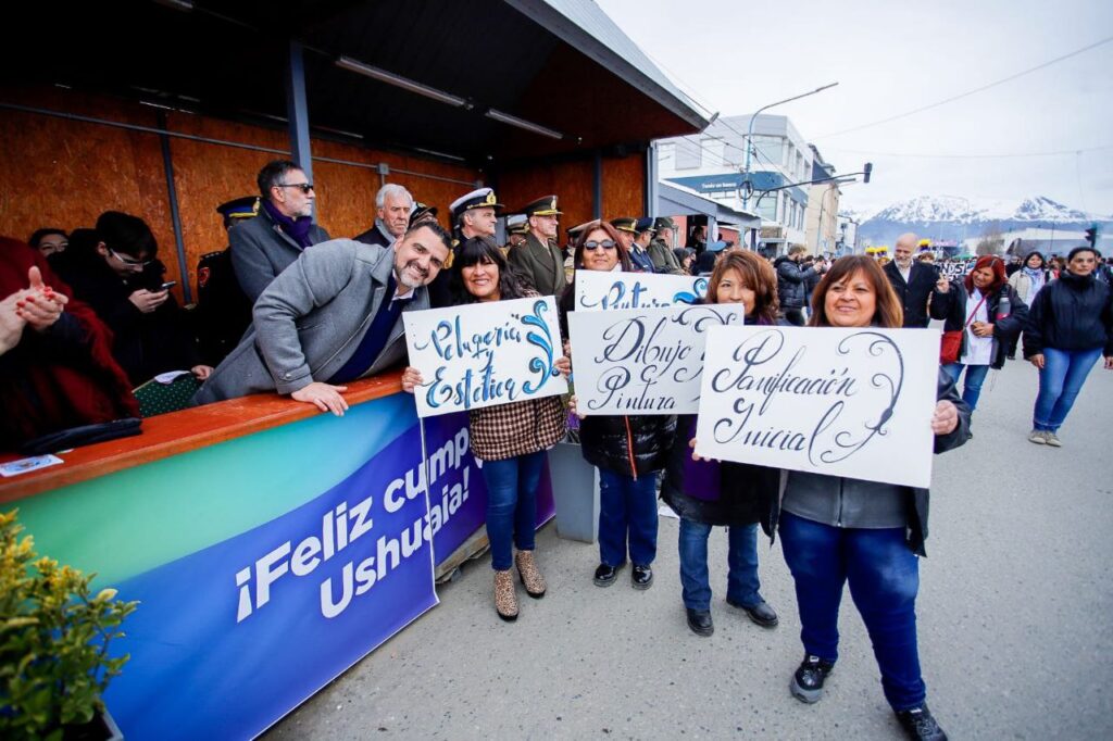 Se dirigió a toda la comunidad de Ushuaia, dispuesta a participar del acto de todos, del tradicional desfile en la avenida Maipú preparada para recibir a las instituciones, asociaciones y organizaciones civiles y militares que celebraron a partir de las 11 y hasta las 16 horas. “Necesitamos más que nunca poder encontrarnos, reconocernos y avanzar, que cada uno ponga lo mejor de si, eso nos permitirá cumplir nuestros objetivos, crecer y tener una mejor ciudad”, dijo en su discurso.