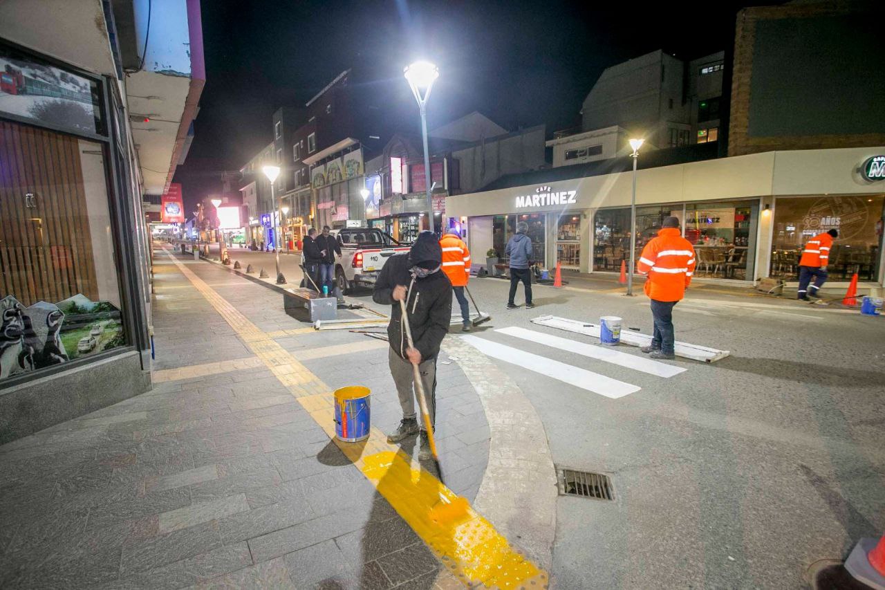 Por esa razón, desde Servicios Públicos, los trabajadores y trabajadoras están abocadas a las tareas de pintura de cordones y cruces peatonales sobre San Martín.