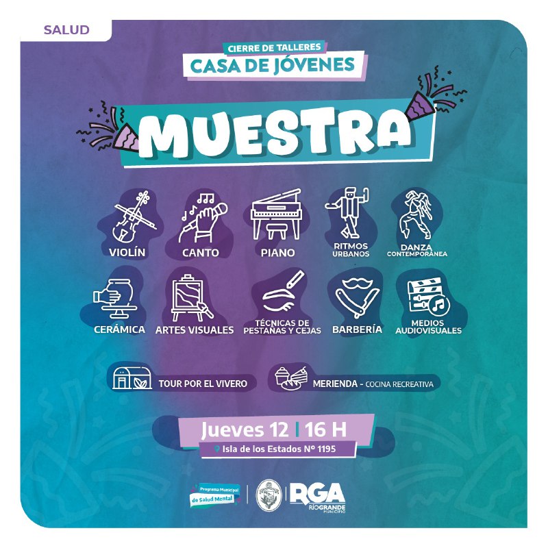 En este marco, este jueves 12 de diciembre se realizará el Gran Cierre de los Talleres a partir de las 16 horas en Isla de los Estados 1195. Habrá muestras de los talleres de cerámica, artes visuales, técnicas de pestañas y cejas, barbería, medios audiovisuales. Además de números en vivo de violín, canto, piano, ritmos urbanos y danza contemporánea.