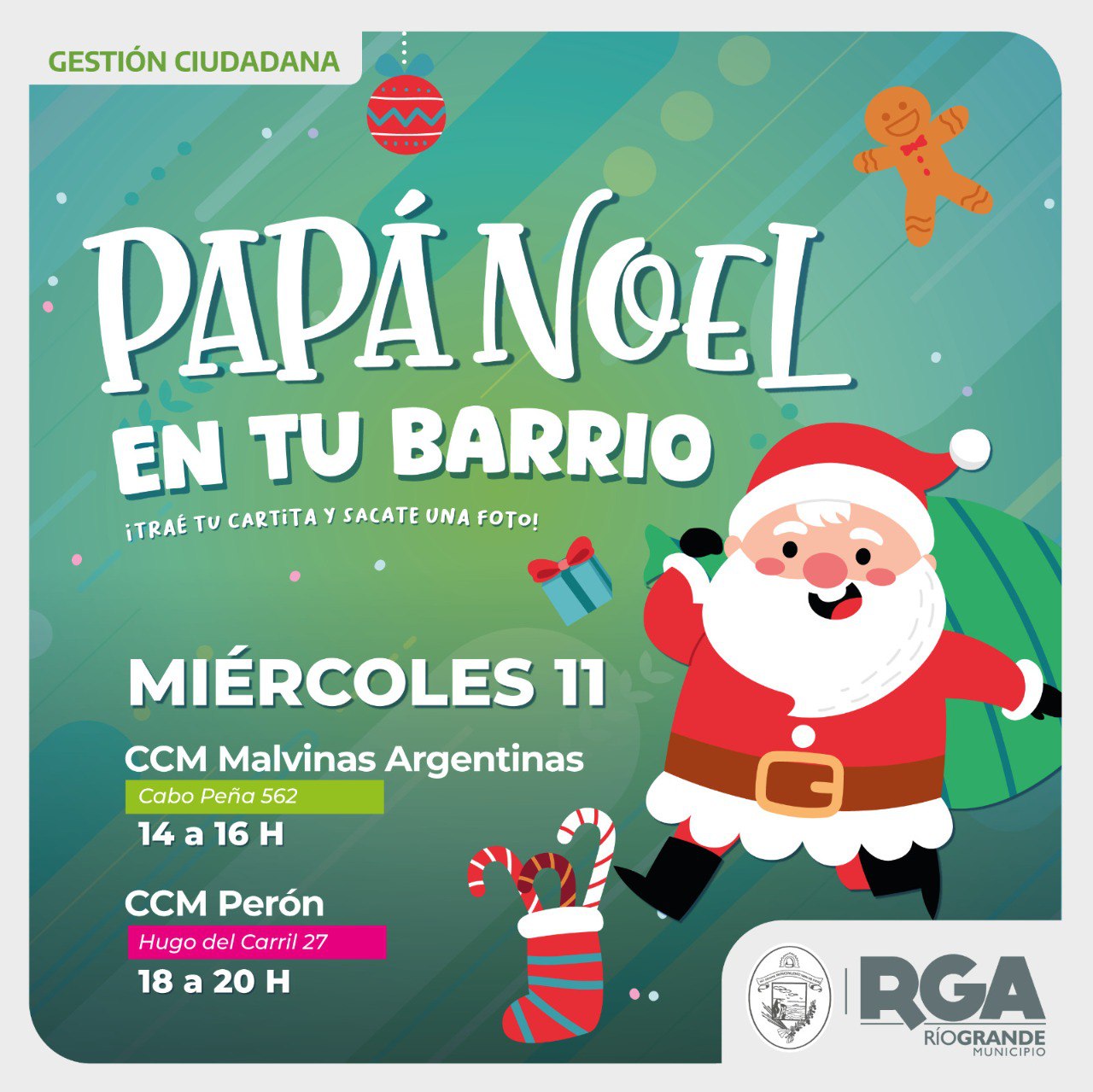 Finalmente, el jueves 19, Papá Noel estará de 14 a 16 horas en el CCM del AGP (Padre Muñoz N.° 1116) y de 17 a 19 visitará la Casa Municipal del barrio CAP (Portolán N.° 465).