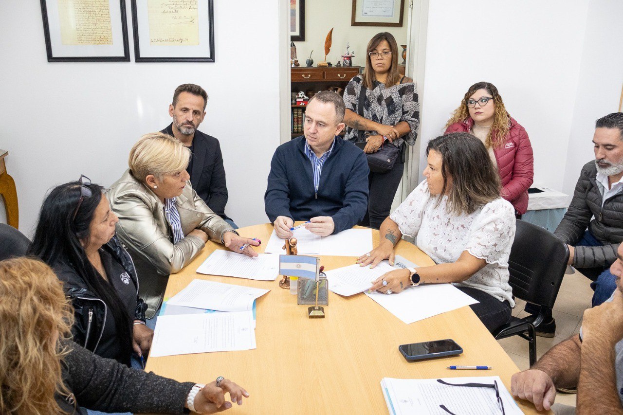 El secretario de Gobierno, Gastón Díaz, mantuvo un encuentro con representantes de las entidades gremiales ATE, UPCN, ASOEM y ATSA. También estuvo presente la secretaria de Finanzas, Valeria Capotorto y el subsecretario de Finanzas, Nicolás Giordano. En el marco del mismo, se acordó una nueva recomposición salarial del 5% al básico, remunerativo y bonificable a partir del 1°de marzo.