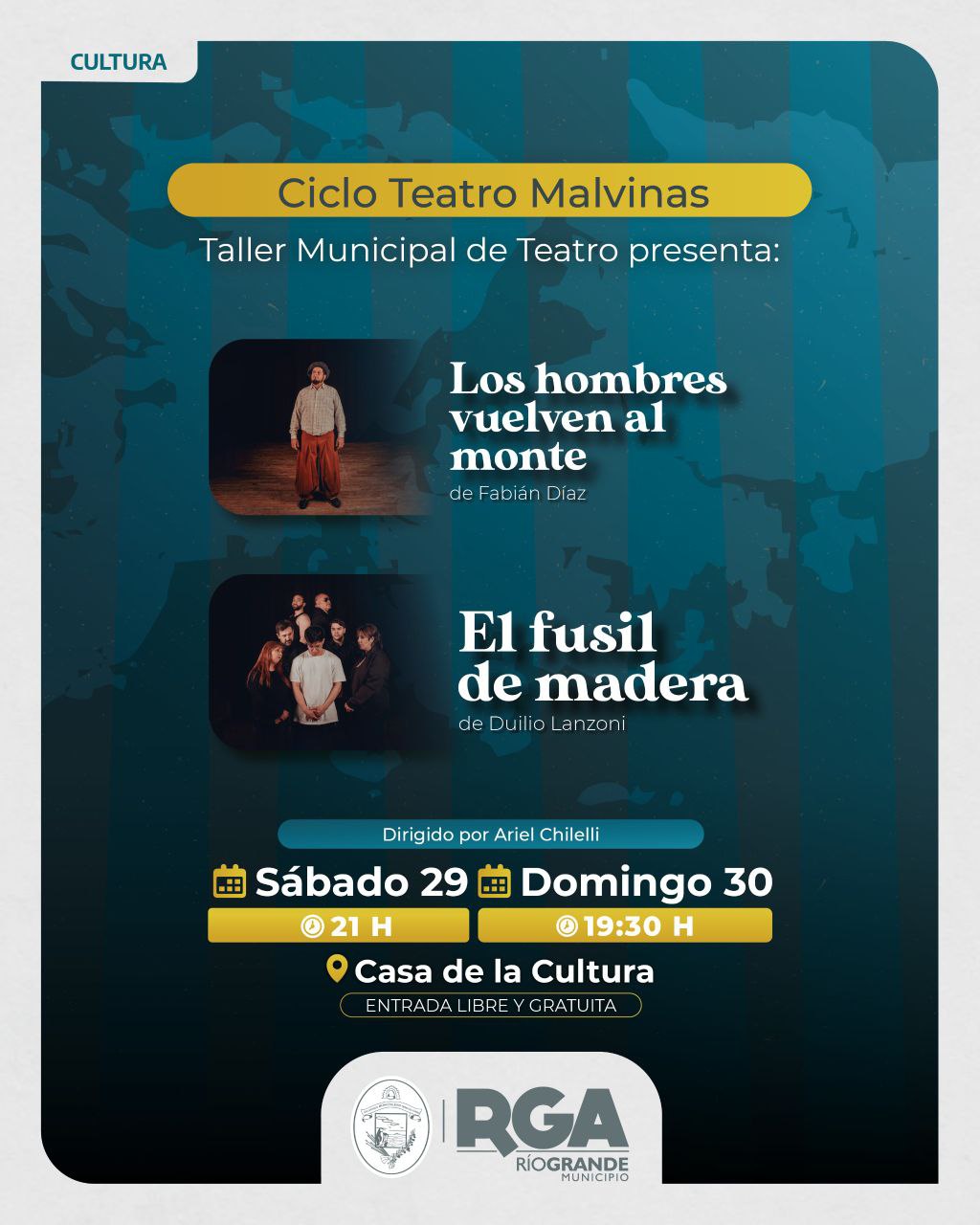 En esta oportunidad, la propuesta cultural brindará dos funciones, donde presentaran las obras: “Los Hombres vuelven al monte” del autor Fabián Diaz y “El Fusil de Madera” de Dulio Lanzoni. Cabe destacar que, en esta última pieza el autor fue parte de la gesta de Malvinas prestando servicios en nuestra ciudad. En la actualidad, después de 40 años de su estreno, se hará lo mismo en la localidad que lo inspiró para escribirla.