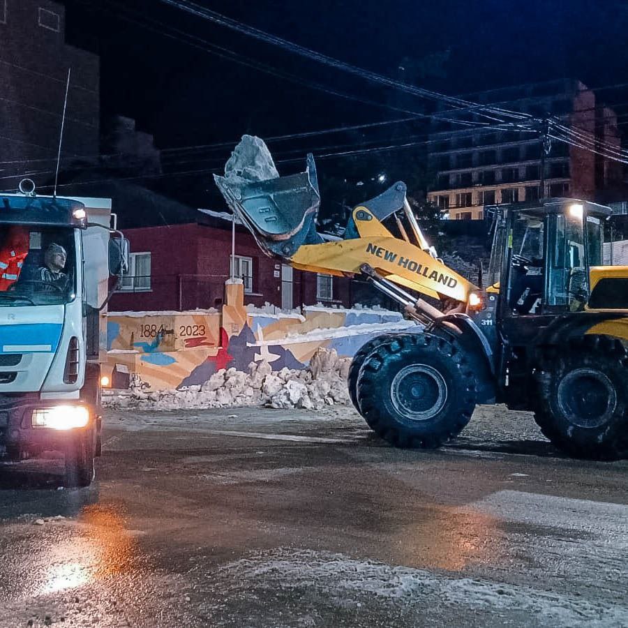 Las tareas de despeje continuaron durante toda la jornada del viernes y en turnos nocturnos viernes, sábado y domingo, priorizando la limpieza profunda del centro y sectores estratégicos como Maipú (desde Yaganes hasta la Rotonda de las Banderas), San Martín y el otro lado de Garramuño, en operativos que se extendieron de las 22 horas hasta las 5 horas de la madrugada.