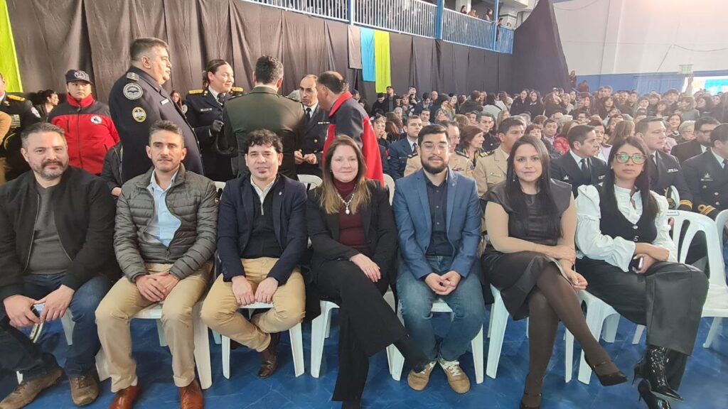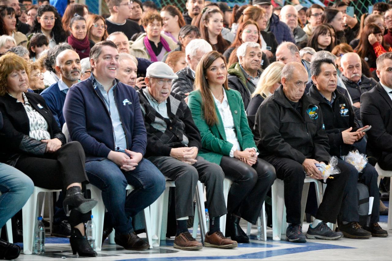 La presidenta del Concejo Deliberante Guadalupe Zamora y los concejales Federico Runin; Jonatan Bogado, Alejandra Arce; Florencia Vargas; Maximiliano Ybars; participaron del acto central por el 104 Aniversario de la ciudad de Río Grande. El mismo se llevó a cabo en el gimnasio del Club San Martín estuvo encabezado por el intendente Martín Pérez.