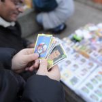 Cambio de figuritas del mundial en el paseo Canto del Viento