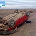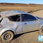 Se le explotó una rueda y volcó violentamente en Río Grande